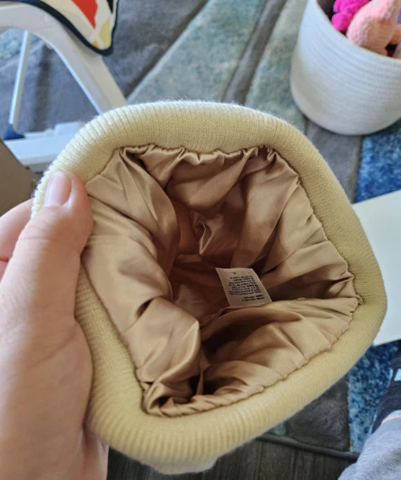 Zdjęłam ją i moje włosy były idealne. Żadnych dziwnych wgnieceń, żadnego elektryzowania się. Satynowa podszewka naprawdę działa. Najlepsza czapka w życiu.